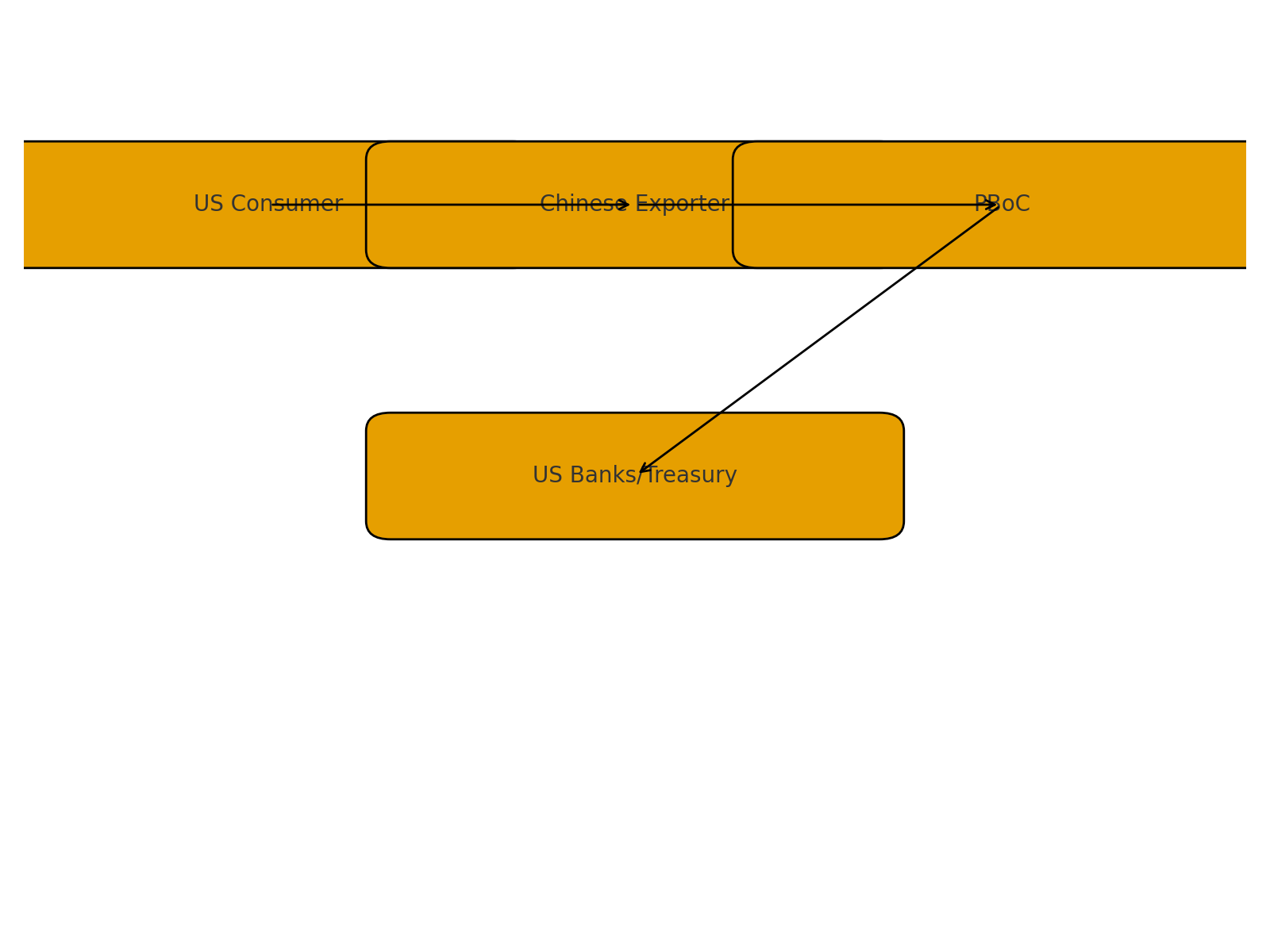 It is worth repeating. The U.S. receives products. China receives dollars. The dollars return home. You can picture this visually as a loop — a flow of money out of the U.S. and back again, powering global trade.
